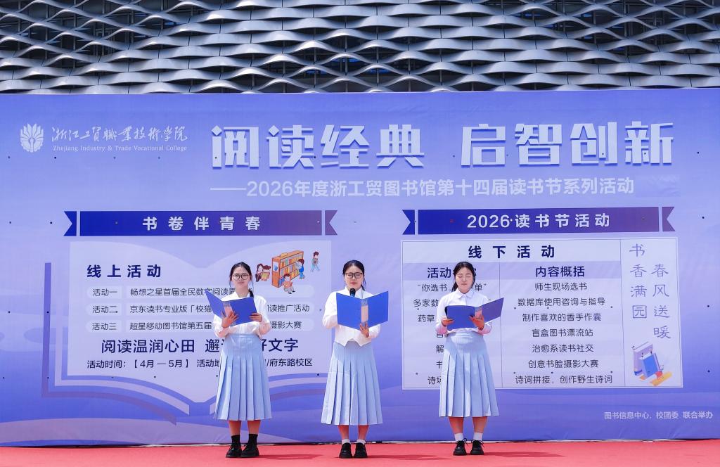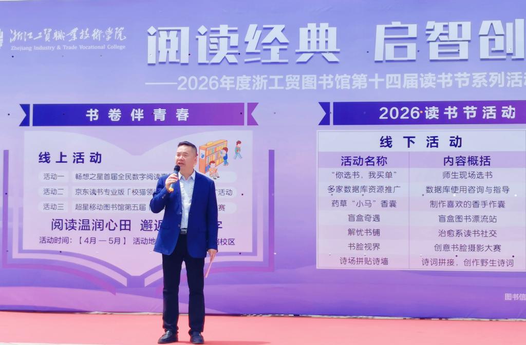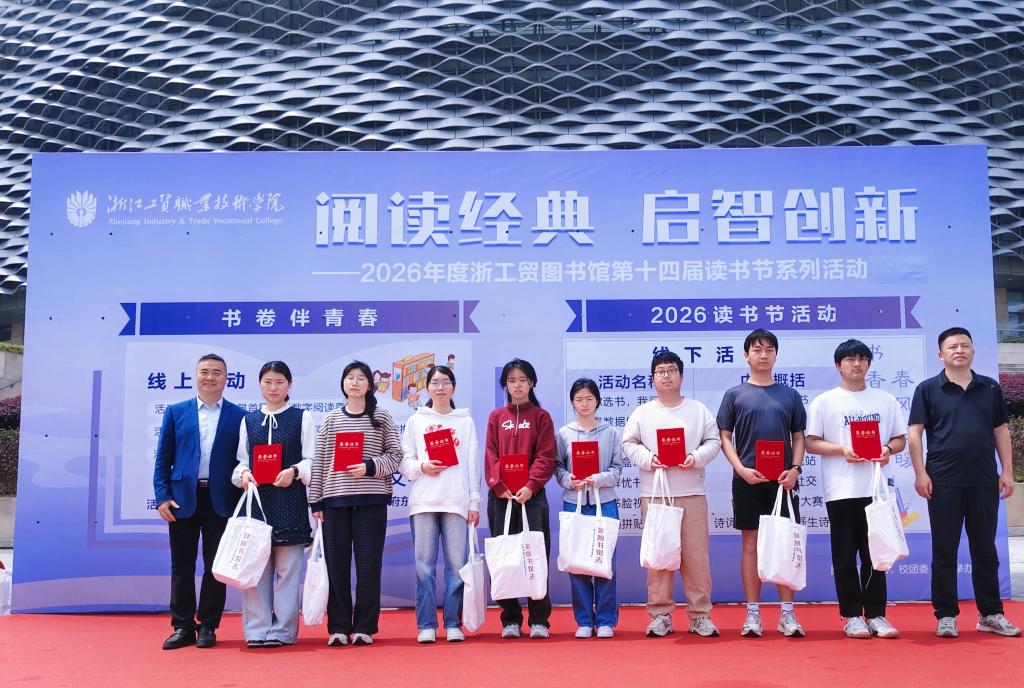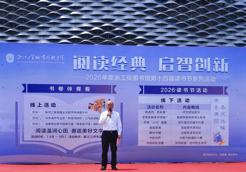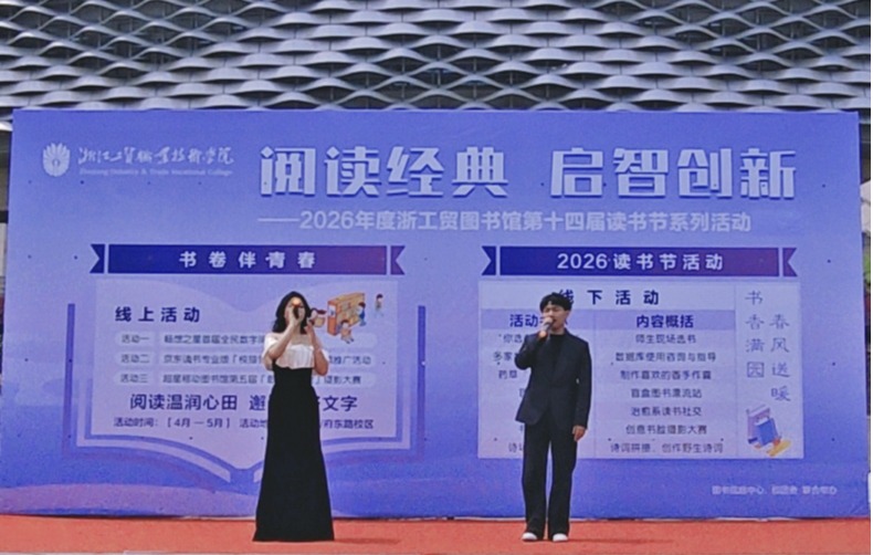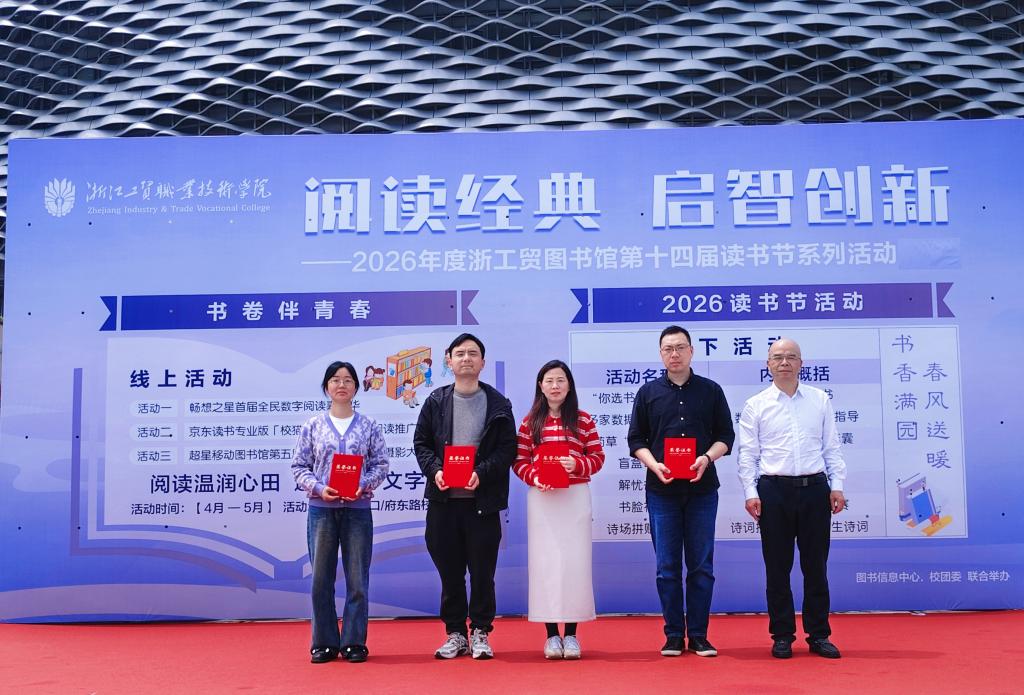 春潮涌动处,书香满校园。为进一步深化书香校园建设,营造浓厚阅读氛围,4月17日中午,2025 年度优秀读者表彰大会暨第十四届读书节(2026 年)开幕式在瓯江口校区图书馆前广场顺利举办。全校180 余名师生代表共赴书香之约,以阅读点亮青春,以书香浸润校园。